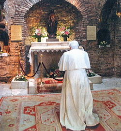 Venir en pèlerinage à « Meryemana Evi », la Maison de Marie sur la montagne prés d’Ephèse en Turquie, n’est plus aujourd’hui une démarche assez unique et solitaire puisque des centaines de milliers de pèlerins y montent chaque année ! Après la découverte de ce lieu marial unique à la fin du 19° siècle sur les révélations de la Bienheureuse Catherine Emmerich[1], la « Maison de Marie » n’a cessé d’attirer… et c’est l’un des sanctuaires les plus visités de la chrétienté[2].